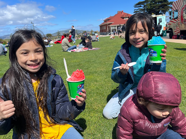 We celebrated Easter a bit early while we were home. My Mom had planned all these fun activities, and asked us to help make them happen. The biggest was the Easter egg hunt over at our old school. My FIL and Sabrina joined us, and between the green and yellow foliage, candy filled eggs, and giant bubbles it was pretty amazing. Then at the house, we played a few really fun games and had Grandma's Easter cake. It was nice bc the kid got endless cousin/family time, and I got the chance to have one on on visits with many members of the family which was unique to this trip. We got back to WA late the night before Easter Sunday, so the next day was pretty low key. We went and saw the blooming cherry blossoms with our grumpy homesick kids, made delicious hot cross buns, and watched the Warriors game.