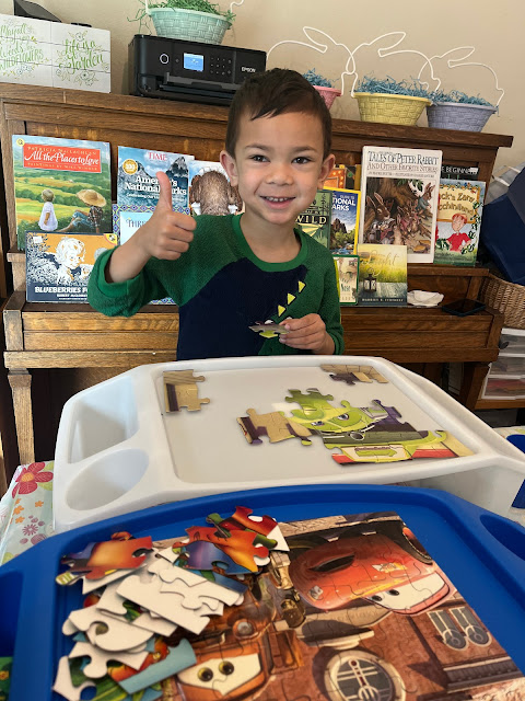 We celebrated St. Patty's Day. Larry stopped by and put a key in green jello, and after getting it out, they used it to open the mailbox where their breakfast was hiding. It was fun and low key! I love little activities that yield so much magic and joy for them at this age. It was fun.